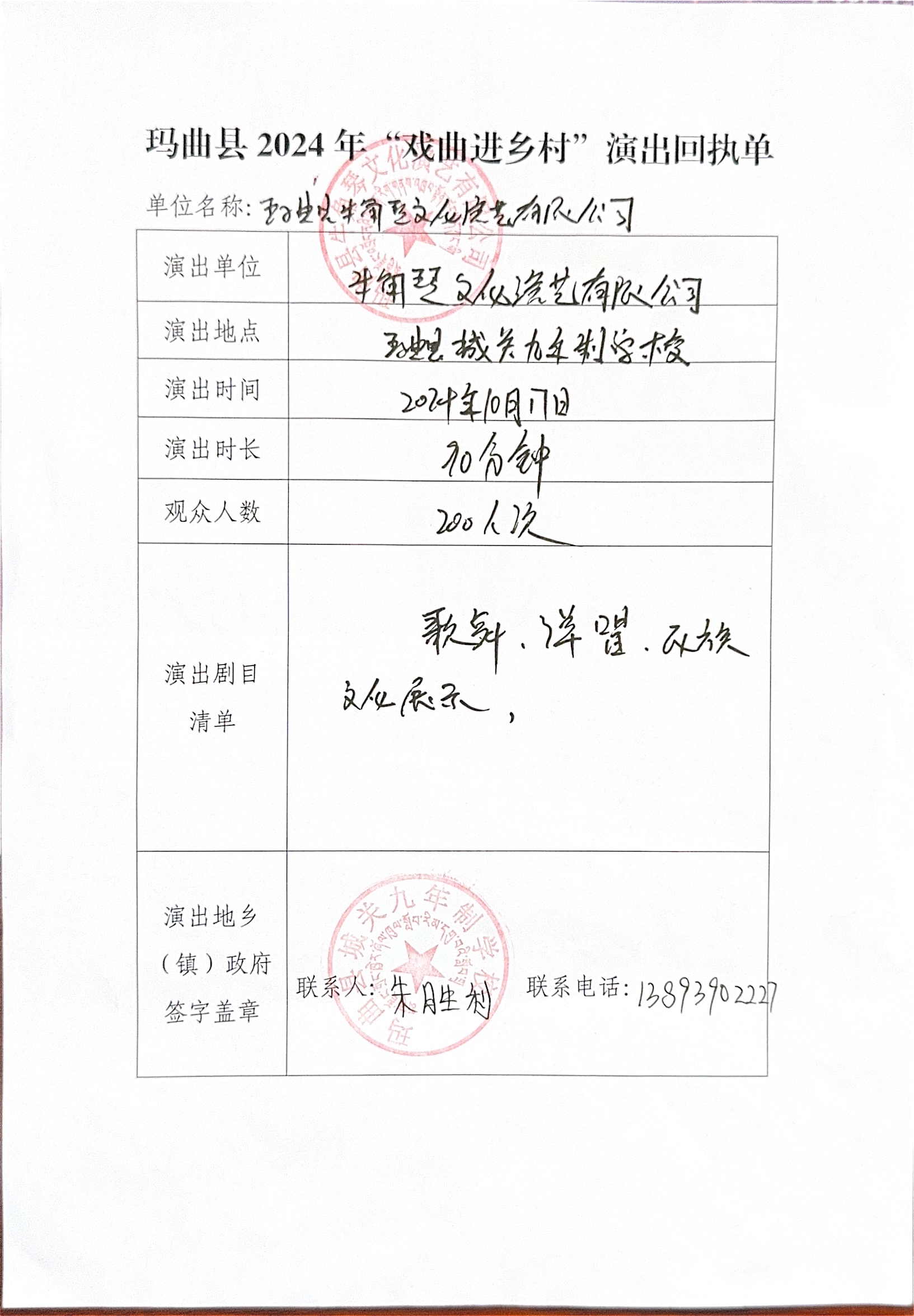 (回执单)