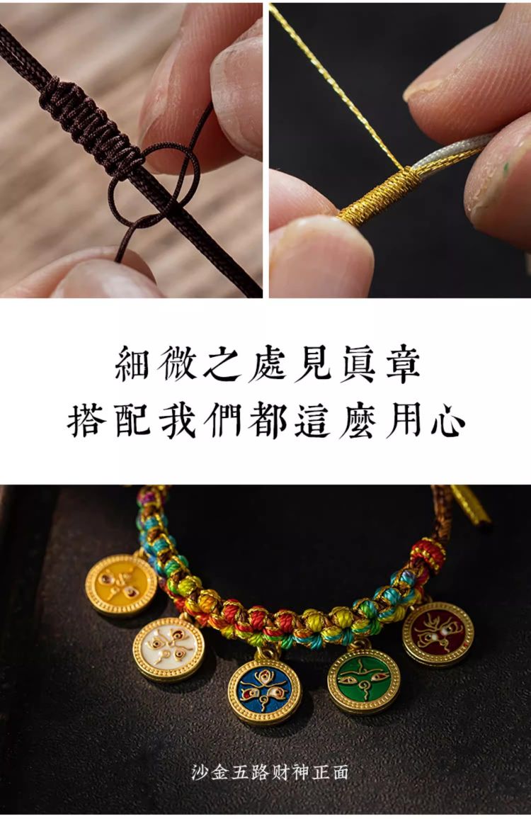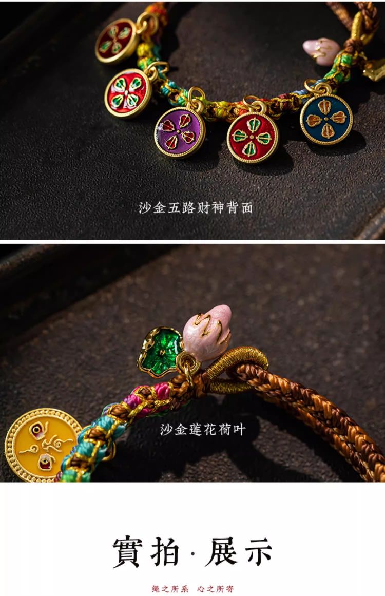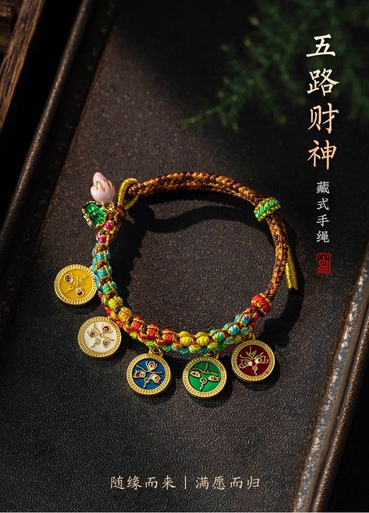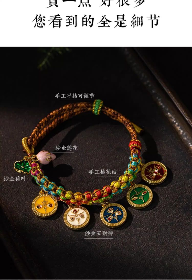 藏式编织五路财神手绳桃花手链民族风复古唐卡手串