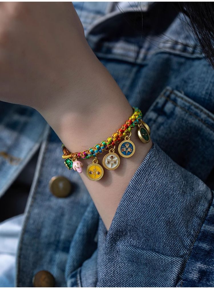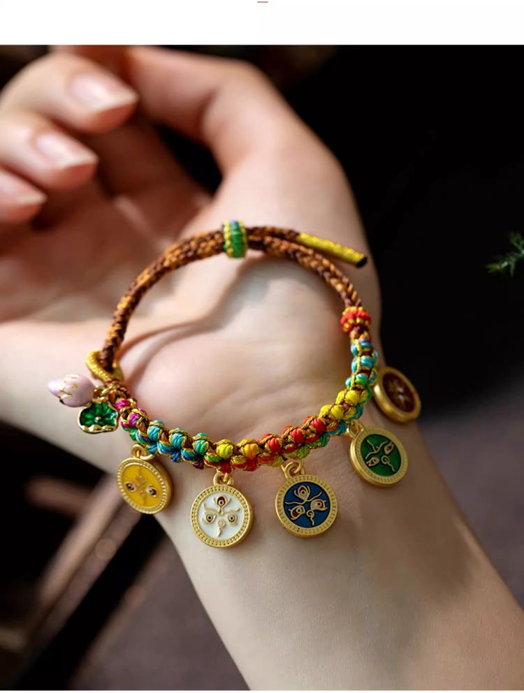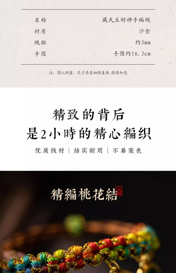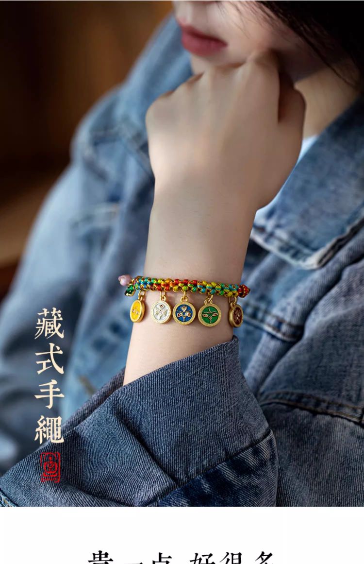 藏式编织五路财神手绳桃花手链民族风复古唐卡手串