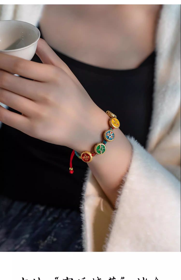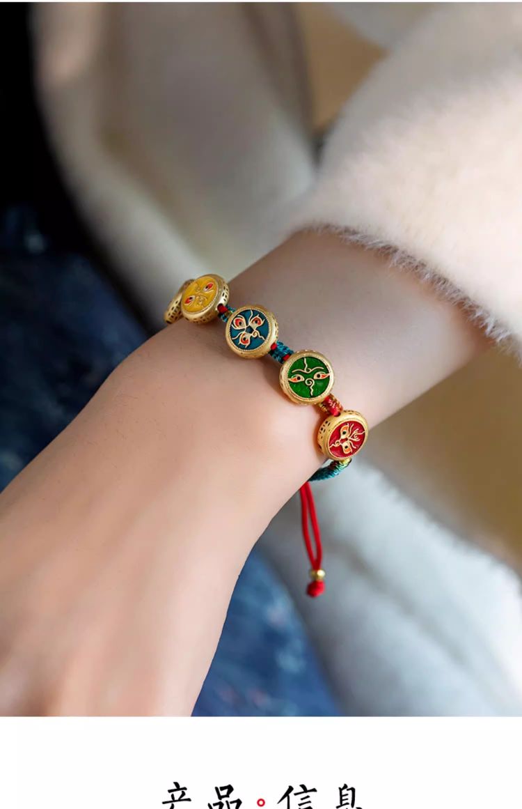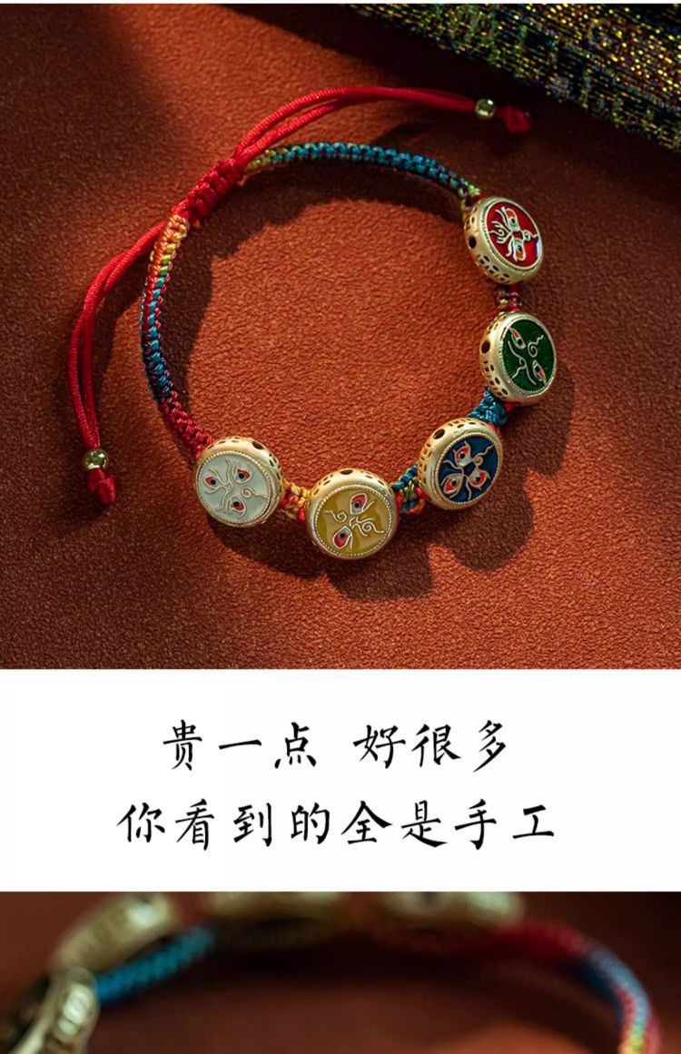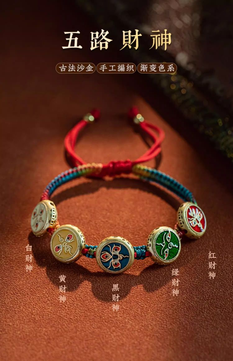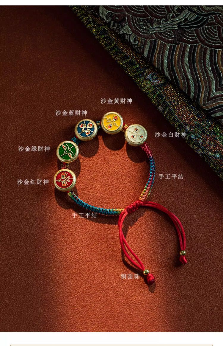 2024年龙本命年红绳五路财神藏式唐卡手工编织绳