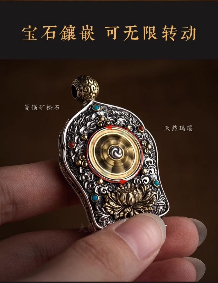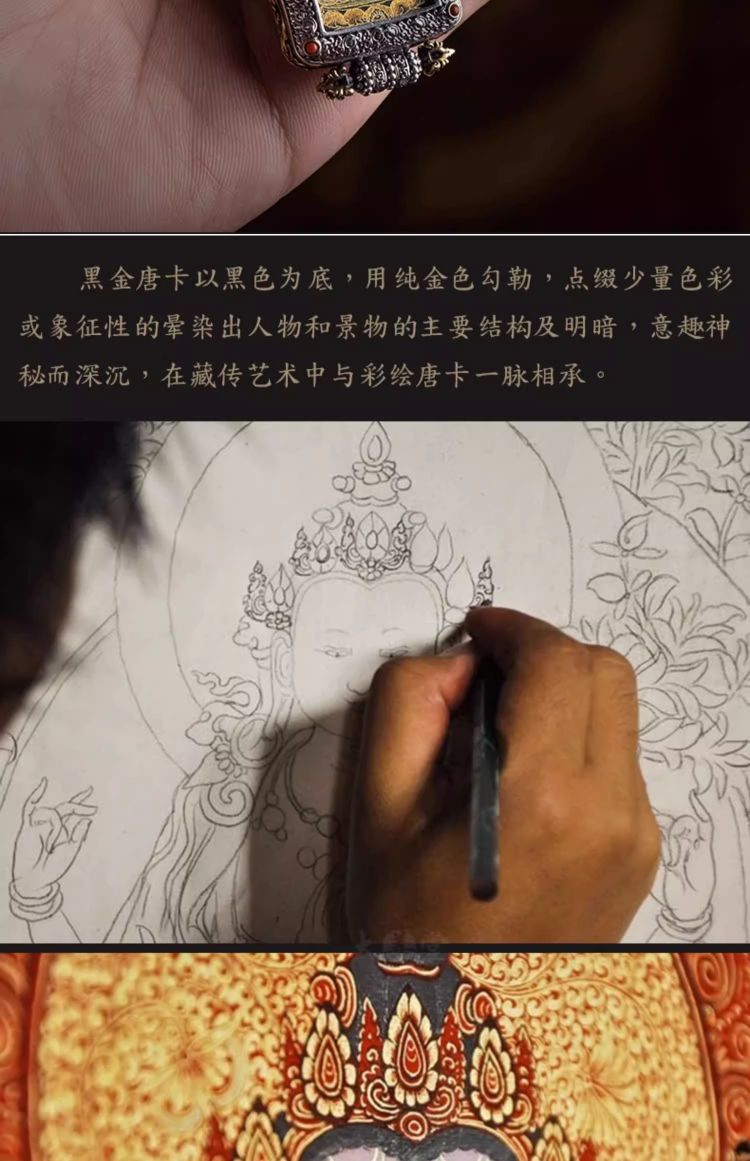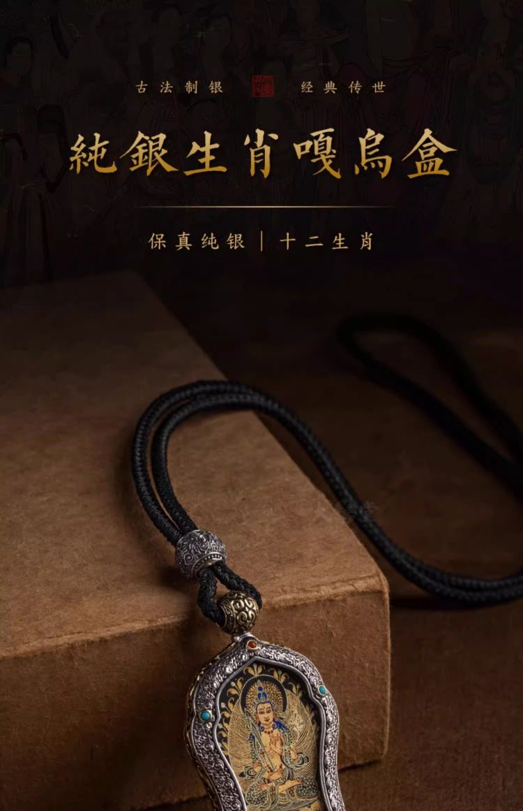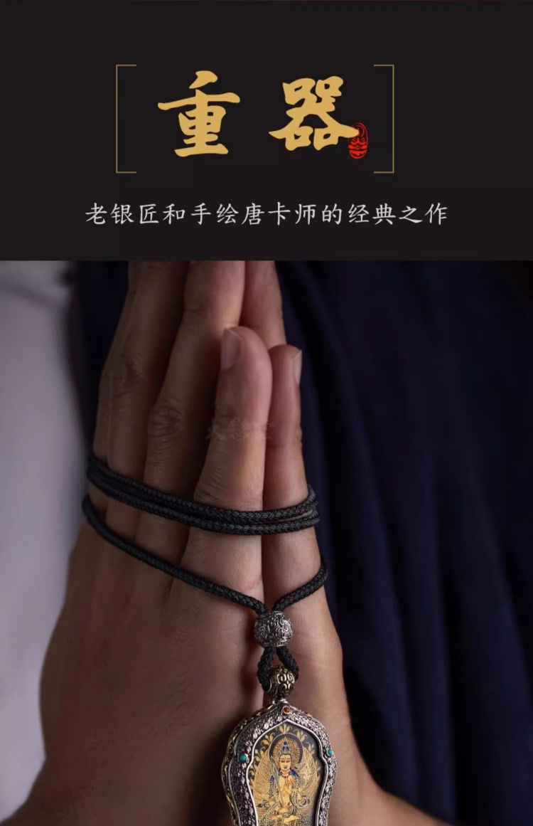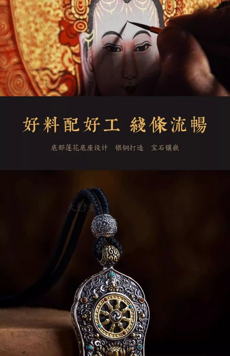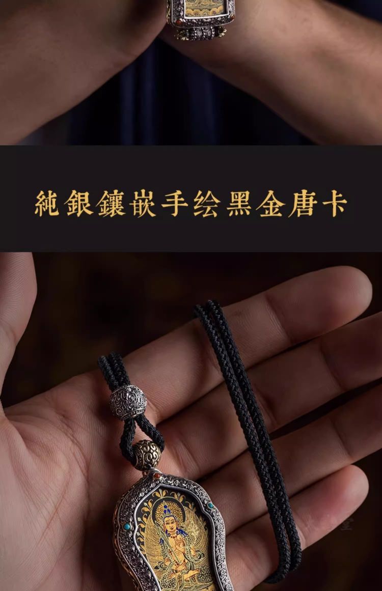 大善堂s925纯银镶手绘黑金唐卡大日如来生肖本命佛吊坠