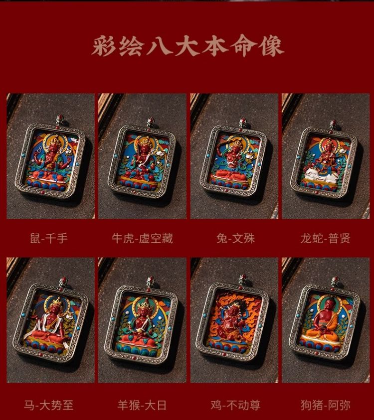 龙年大善堂朱砂正品官方旗舰店藏式彩绘生肖本命佛吊坠