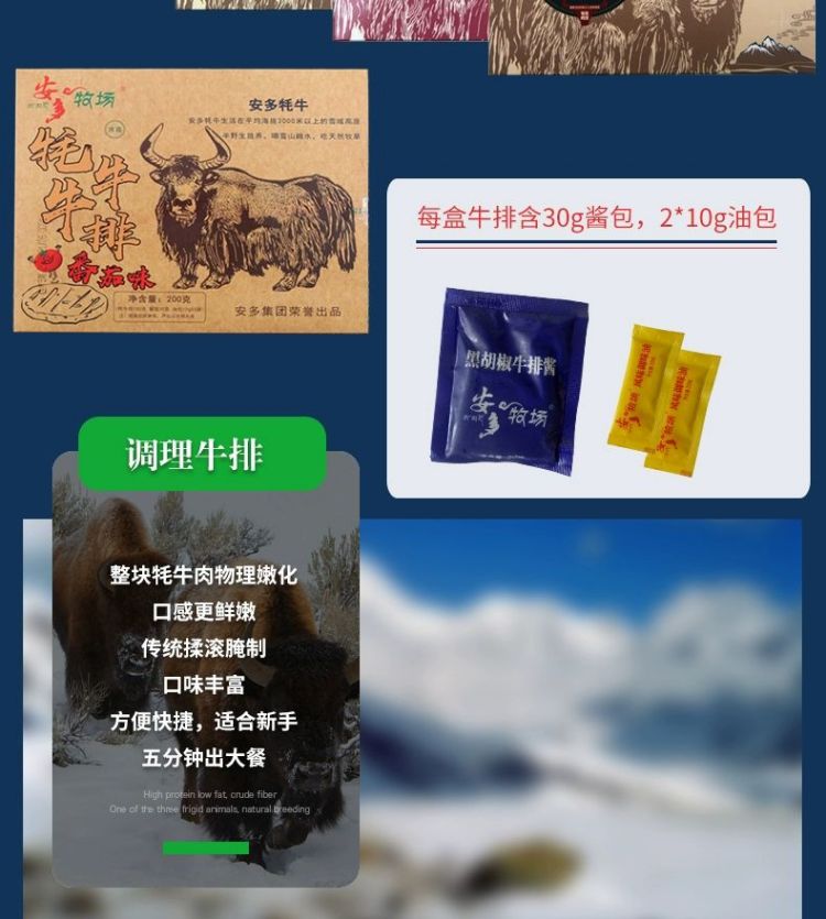甘肃甘南临夏安多清真散养草饲西式牦耗牛排