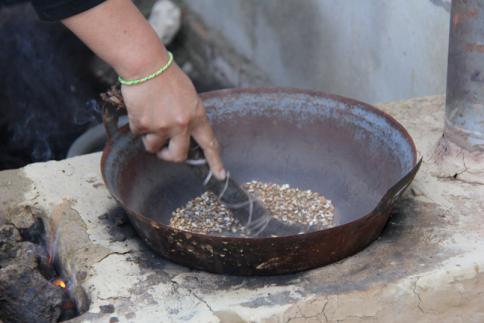 吃糌粑时,碗里放上一些酥油,冲入茶水,加点糌粑,再放些曲拉,然后用右手不断搅匀。拌时,先用中指将炒面向碗底轻捣,以免茶水溢出碗外;然后转动着碗,并用手指紧贴碗边把炒面压入茶水中;待炒面、茶水和酥油拌匀,能用手捏成团,就可以进食了。食时用手不断在碗里搅捏,揉合成团叫“粑”,用手往嘴里送。藏族群众吃饭一般不用筷子、勺子,只用手抓。