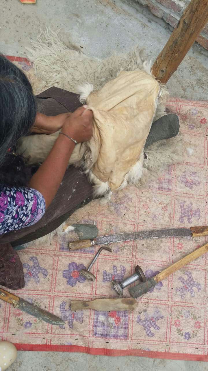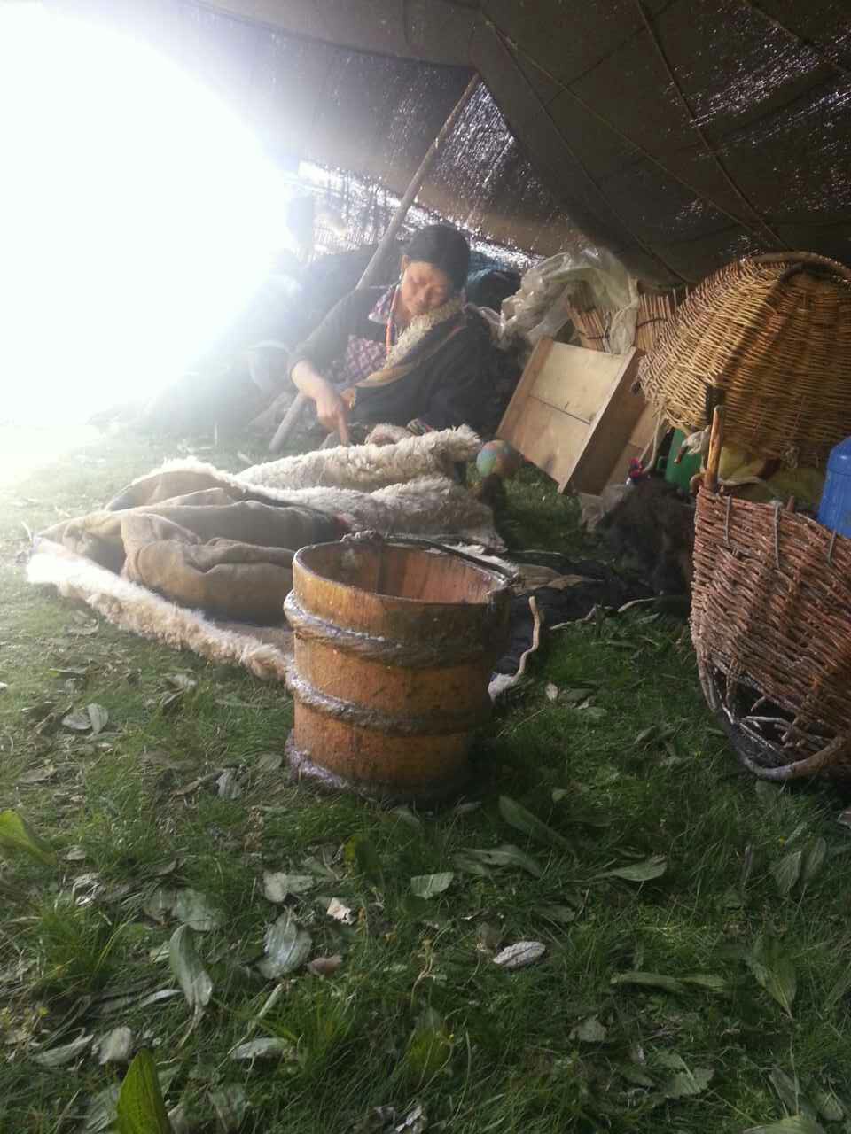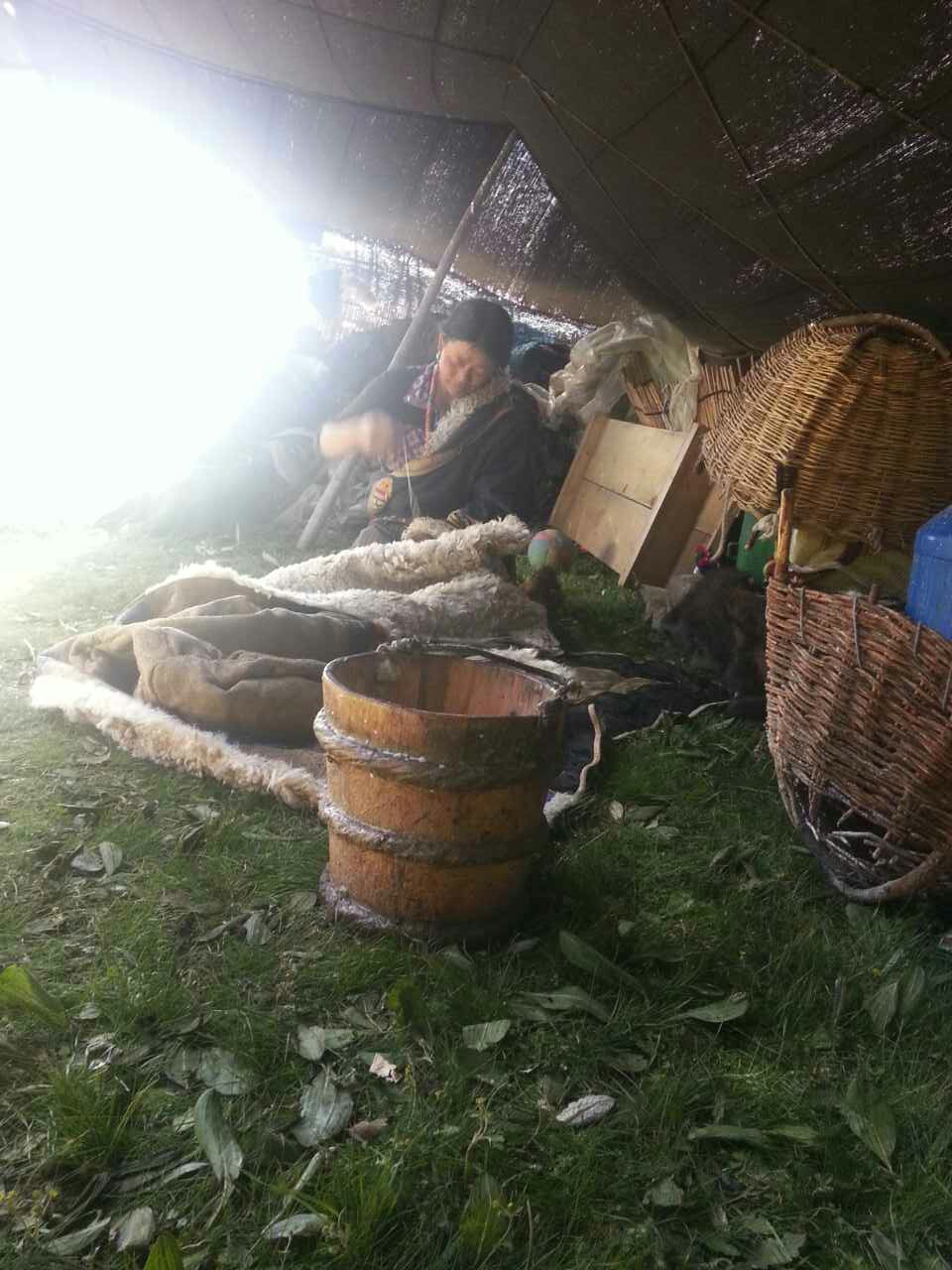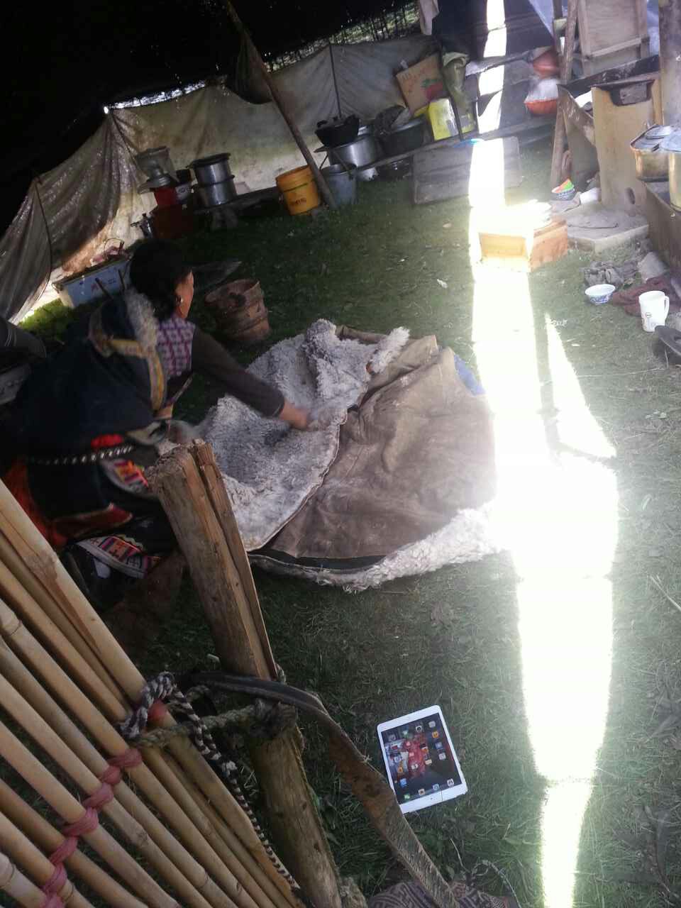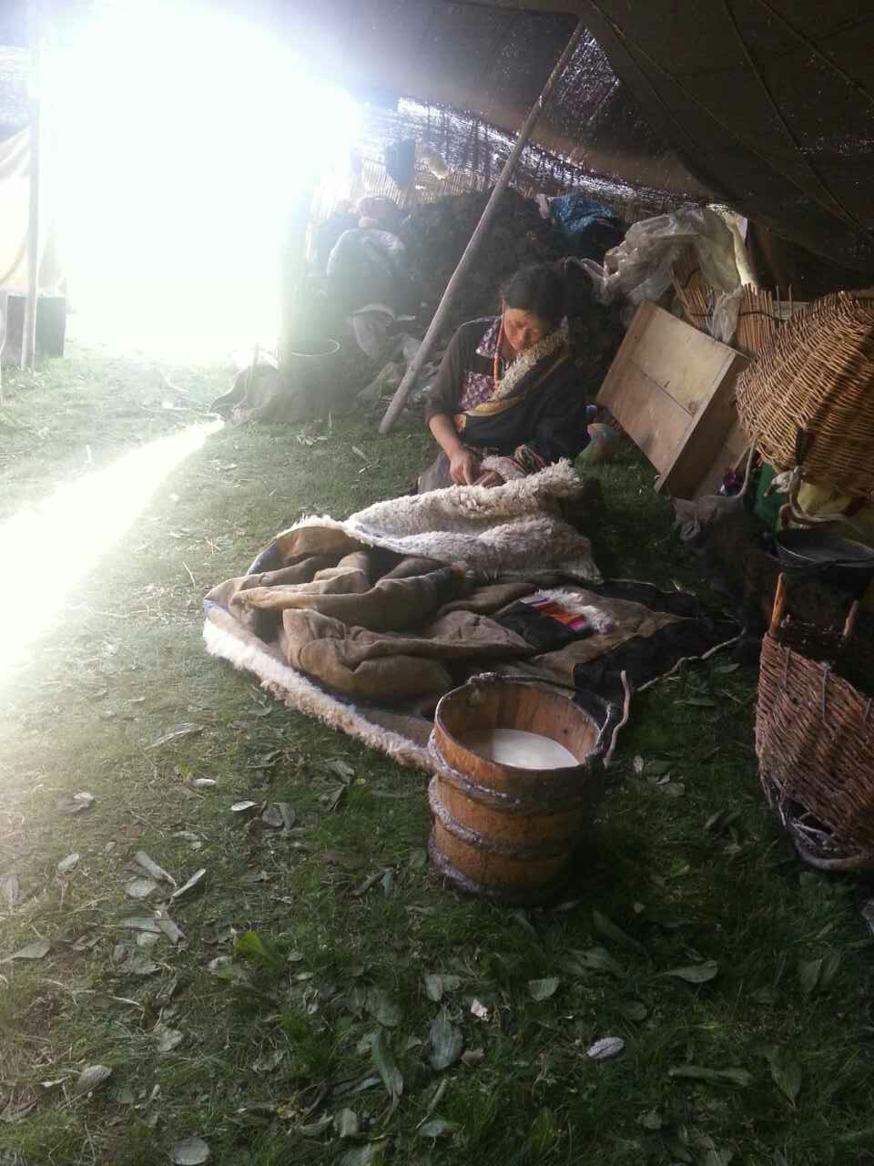玛曲地处青藏高原东端,这里气温低,风沙大,又是辽阔的草原、天然的牧场,生活在这里的人们就要选择便于起居、行旅、保暖御寒的服装。因此,牧区藏族穿着以皮袍为主,它结构肥大,袖口宽畅,穿着自如,白天阳光充足,气温升高时,可脱袖露臂,调节体温,夜间可解带和衣而眠。牧民的皮袍离不开腰带,穿时提起下摆与膝盖平齐,腰带一束,怀里形成大囊,里面可装不少随身用品。皮袍是用土法加工的绵羊皮缝制的,既经久耐用又抵风御寒。普通皮袍,男式的宽腰、大襟、肥大,襟、袖和下摆用10至15厘米宽的黑绒镶边,但也有不做装饰边的。女式皮袍的襟、袖和下摆先用宽10至20厘米的黑平绒镶边,再用红、蓝、绿三色平绒(各宽5至10厘米)镶边。