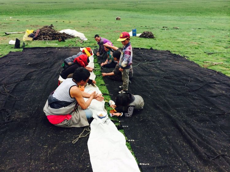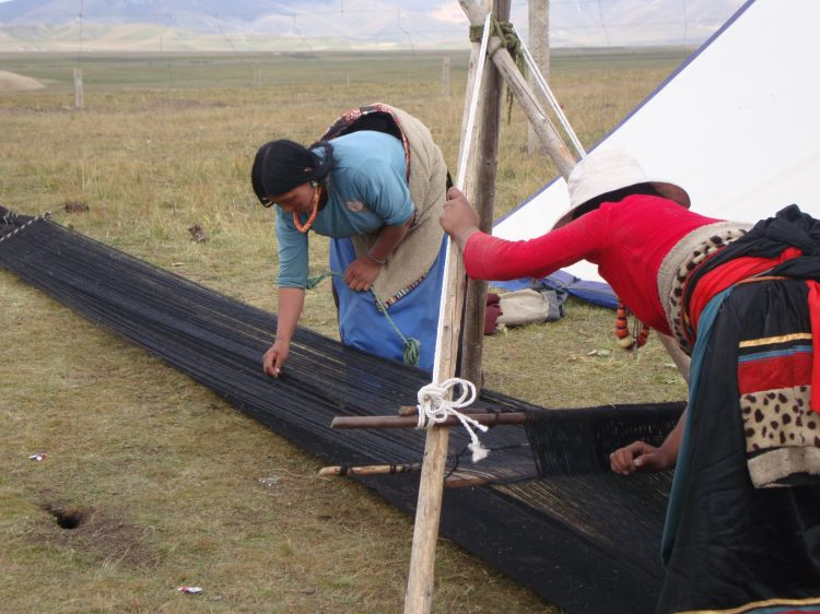 玛曲的帐篷制作技艺有两种类型:第一种是比较原始的牧民居住的黑色牛毛帐篷,第二种是白色棉布帐篷。帐篷俗称“毡帐”、“旗帐”、藏语称帐篷为“围格尔”。