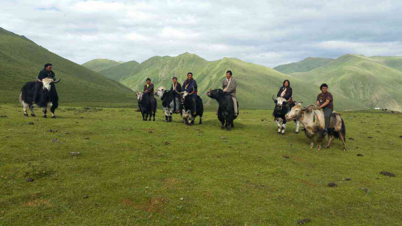 赛前,骑手将牦牛精心地洗刷打扮,并在长而弯曲的牛角上系的各色彩绸,表示吉祥如意,夺魁在望。骑手头戴礼帽,身着藏袍,腰扎红带,足蹬皮靴,干净利落。他们多是十四五岁的少年,体轻灵巧,便于驭牛。