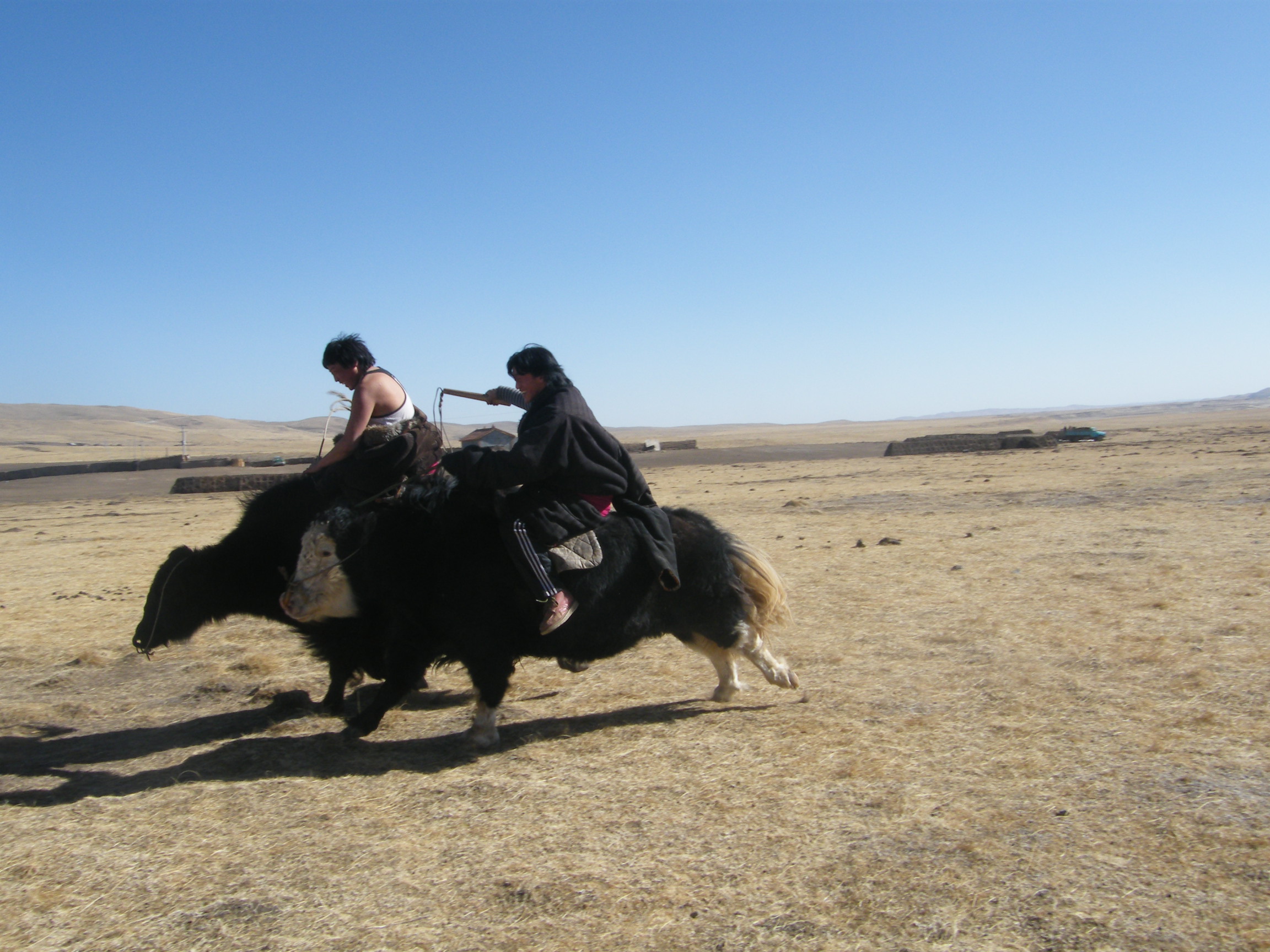 赛牦牛是藏族的传统体育项目。由经验丰富的牧民驾驭性情暴躁的牦牛进行赛跑比赛,过去在11月25日进行,现改在望果节(秋收前)和响浪节(农历六月中旬)。比赛时,牧民骑手待于起跑线,发令后即驭牛疾奔200-300米,以先到终点者为胜,获胜者将受到观众的热烈祝贺并受酒肉奖励。