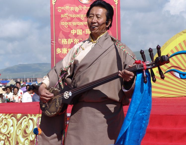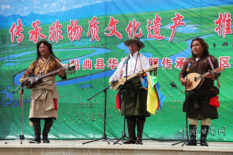 玛曲是藏族民歌弹唱的故里。民歌弹唱是弹唱歌手自弹自唱、即兴填词的一种表演形式。其伴奏乐器以阿里琴为主,也有三弦琴、曼陀铃等作为伴奏乐器。玛曲地域辽阔,又是甘、青、川三省交接的旱码头,境内文化底蕴丰厚,格萨尔文化、民俗文化、宗教文化特色浓郁,因而形成了丰富多彩而又独具特色的玛曲藏族民歌弹唱。弹唱歌词内容涉及历史、宗教、文化、生活等各个方面,是勤劳的藏族人民创造了灿烂的物质文明的同时,所创造出来的优秀传统音乐产品。随着社会的发展,玛曲藏族民歌弹唱也形成独树一帜的表演风格。