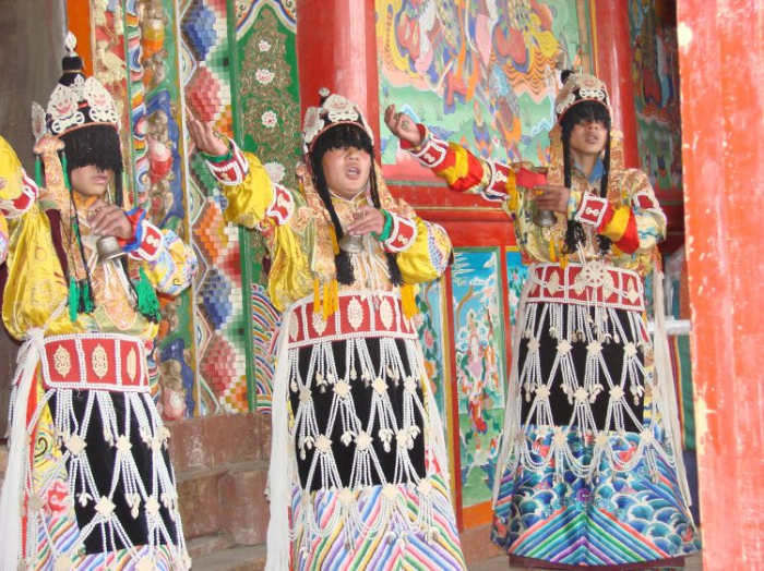 一般寺院法定或者盛大的节日中进行演奏和奏演。县境内的各寺院,根据寺院规模的大小,均设有乐队,他们和藏区其他寺院一样。乐器分为管弦乐器和打击乐器等。如:唢呐、横笛、螺号、法螺、弦子、大鼓、手摇鼓等。