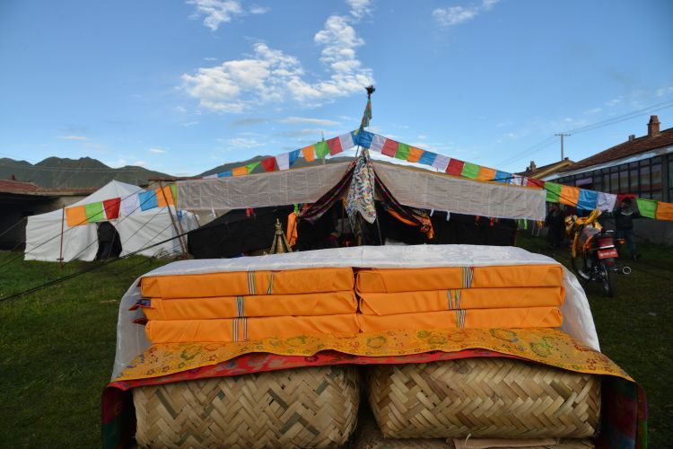 一、结婚 玛曲牧区的婚配程序虽然大同小异,但一般情况是:第一步合婚。是指男女通过介绍或自由恋爱而要结婚时,先要请僧人(喇嘛)算命,看其婚姻是否吉祥。如卜算结果满意,就进行第二步:求婚。一般有男方或女方请亲友或媒人带一条哈达和礼品到女方家正式提亲,若女方父母同意,回敬一条哈达。然后,约一个吉祥之日举行订婚典礼,藏语称为“隆西仓”意为订婚之酒。继尔,男方向女方赠送礼品和一笔财礼,藏语称此笔钱为“窝红”,意为奶钱。之后制定婚约,大摆酒宴庆贺。最后便选择吉祥日子迎婚。