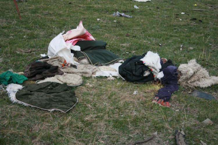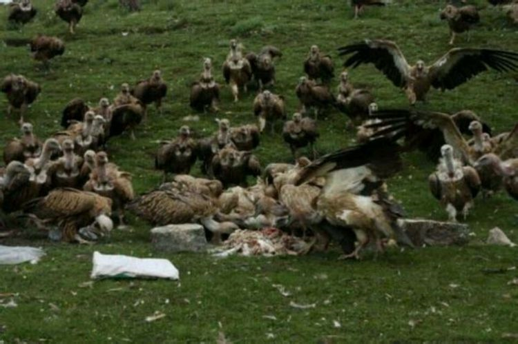 玛曲各部落一般都有自己的天葬场。天葬场地一般选在离居住点较远,视野开阔,环境较好的半山坡或山脚。有的天葬场是一块天然的巨石。有的则是一片草地,有人搬来一块或一堆石头以便垫着咂人骨。此俗受释迦摩尼“舍身喂虎”的精神影响,时至今日,藏区仍以此葬法居多。