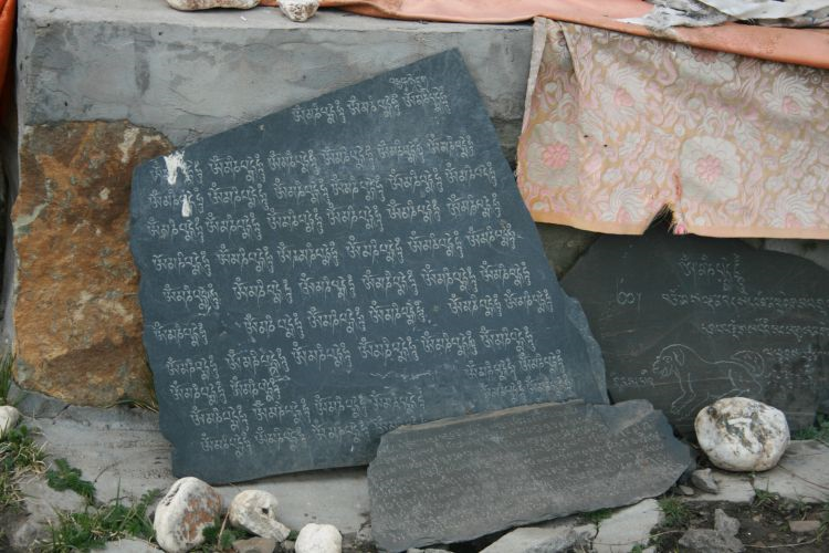 送葬以后,都会请僧人为死者念49天的经加以超度。念经时要点酥油灯,供上糌粑桑,每天要给酥油灯添油,使其长明不熄,以供奉死者。个别人家还专程到拉卜楞寺院为死者点酥油灯,并给僧人供饭。有的家庭还出钱刻有六字真言的“嘛呢石”, “嘛呢石”的放置点,一般时死者生前选好的;也有死者家人择地放置。对因非正常死亡而土葬的人,“嘛呢石”往往放在葬地。死者的物品财物,会施舍给乞丐、赠送给“惹甲巴”和刻“嘛呢石”的人,如果身后无人继承,则全部献给寺院。如有继承人,也以此继承下来,除丧葬仪式费用,念经花销外,留给子女的只有生产工具。