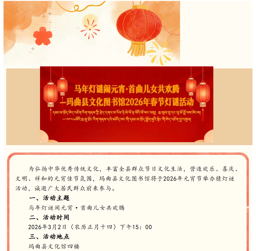 马年灯谜闹元宵·首曲儿女共欢腾—玛曲县文化图书馆2026年春节灯谜活动
