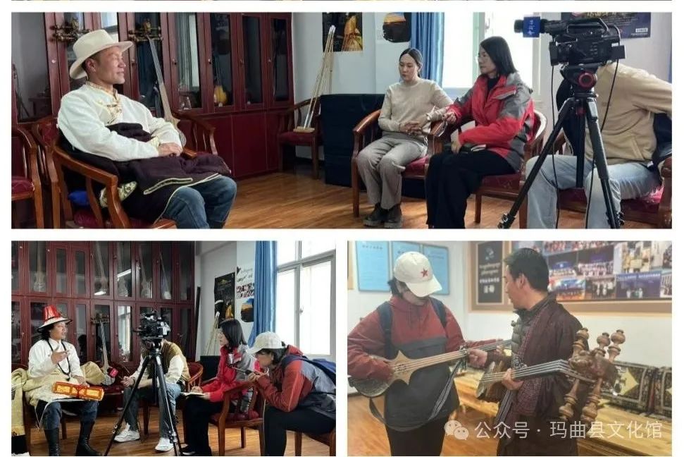 5月8日,中国新闻社甘肃分社一行来玛曲县县文化馆实地参观采访、调研,馆长拉毛卓玛带领记者参观了我馆非遗展厅。并在非遗保护中心采访了国家级非物质文化遗产项目名录龙头琴弹唱、省级非物质文化遗产项目名录牛角琴演奏技艺、格萨尔说唱和藏鹰笛吹奏技艺的代表性传承人。