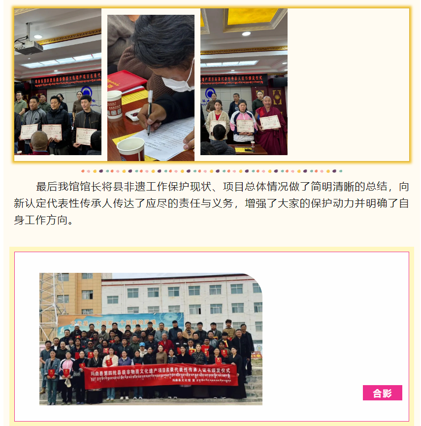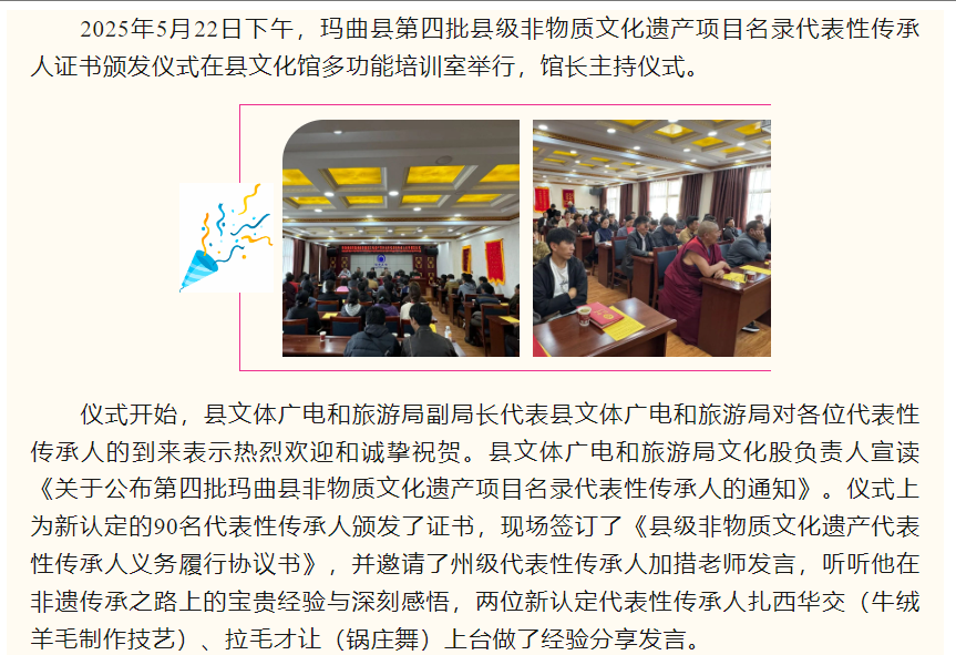 玛曲县第四批县级非物质文化遗产项目名录代表性传承人证书颁发仪式