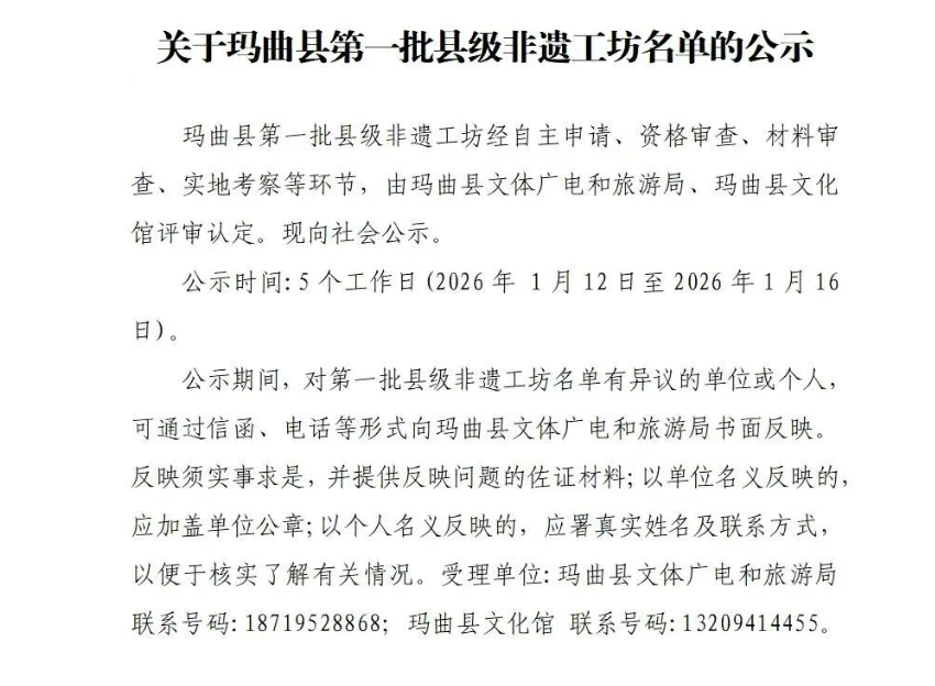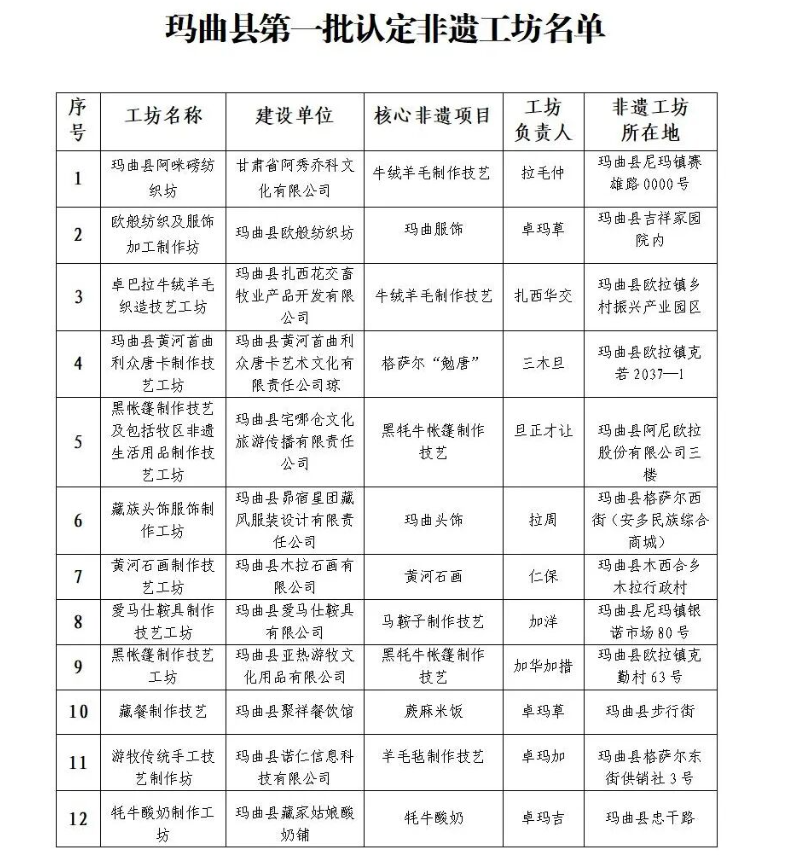 关于玛曲县第一批县级非遗工坊名单的公示