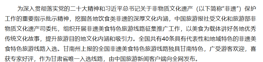跟着非遗去旅行——“探甘南风情 品非遗烟火 多彩甘南非遗之旅”成功入选全国非遗美食特色旅游线路