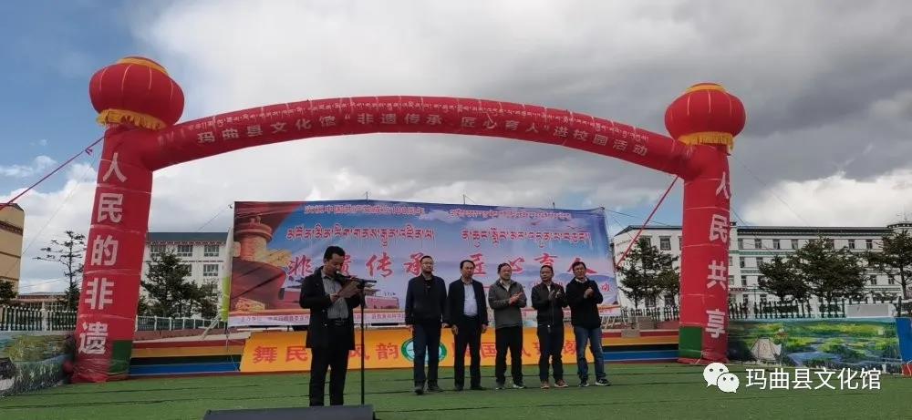 庆祝中国共产党成立100周年暨非物质文化遗产进校园活动在县寄宿制藏族小学、县第二寄宿制藏族小学举行,活动由文化馆馆长才让当知主持,中共玛曲县委宣传部副部长王元宝致辞。
