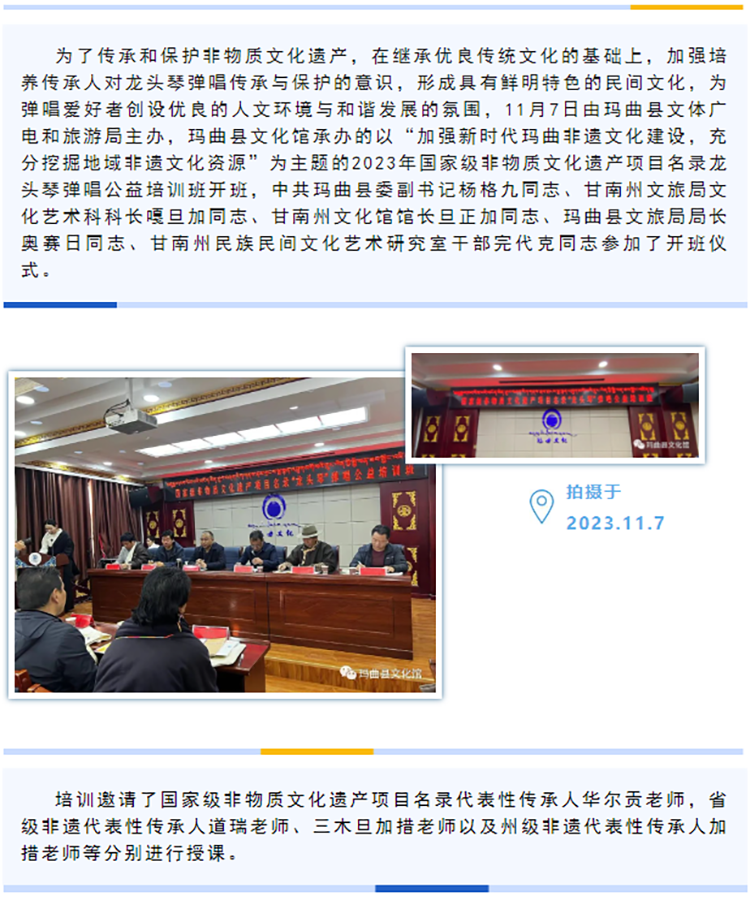 为深入贯彻落实习近平总书记关于非物质文化遗产保护工作的重要指示精神,弘扬民族文化,进一步丰富群众文化活动,提高人民群众非物质文化遗产保护意识。在“文化和自然遗产日”到来之际,由中共玛曲县委宣传部、玛曲县文体广电和旅游局主办、玛曲县文化馆承办的庆祝甘南藏族自…