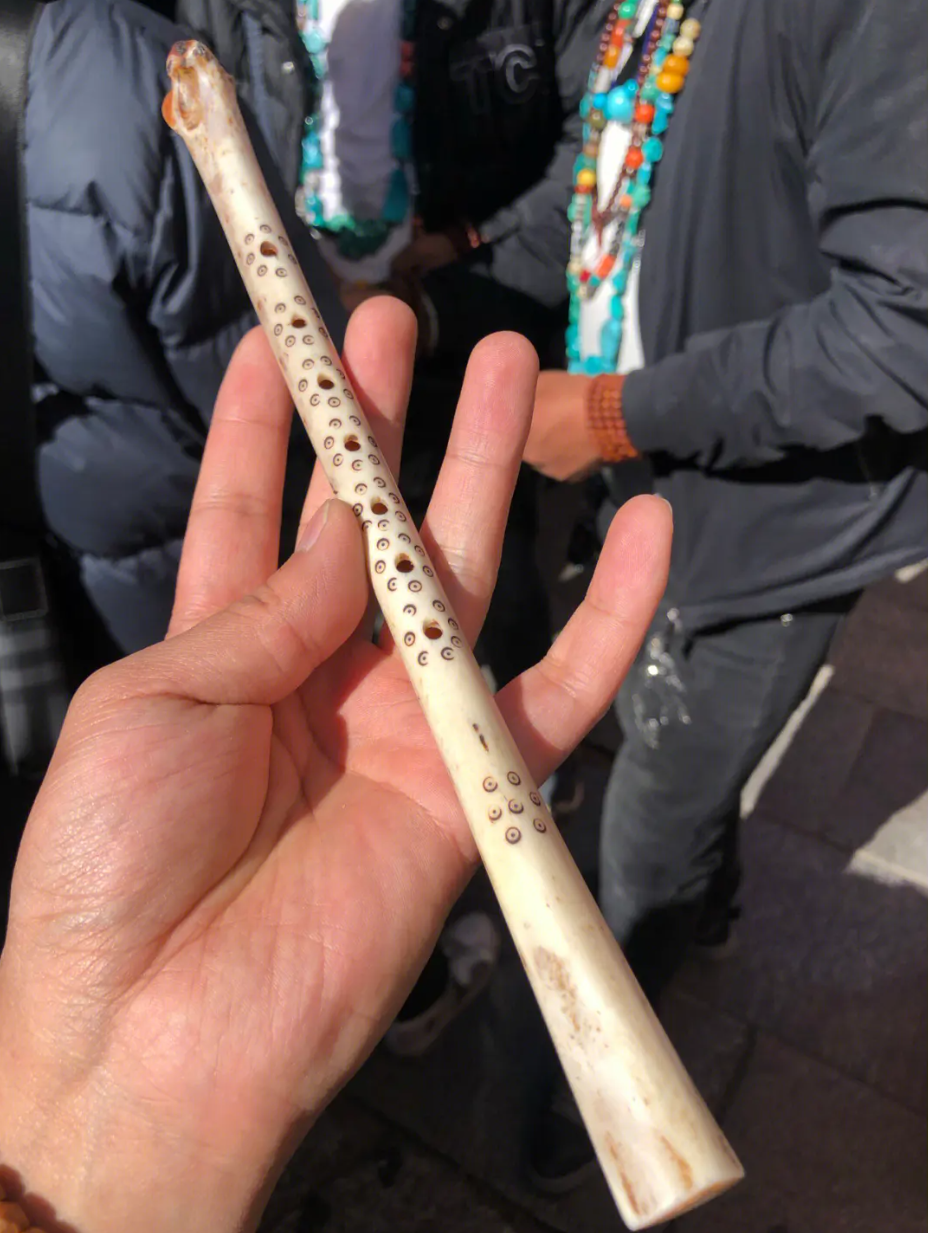 藏鹰笛,藏语中称为“秀郎”,是藏族最古老的一种吹奏乐器,它是用秃( 俗称“骨叉”) 的翅膀骨制作而成,构造十分简单,选用一根秃鹫的翅膀骨,将骨打磨好,锯取粗的一头,然后在一个水平线上挖六个发音孔( 还有三个、四个、五个孔的 演奏时拿着造孔的翅膀骨竖着吹奏,吹出的曲调多样,内容丰富,很受藏族群众的喜爱和欢迎。