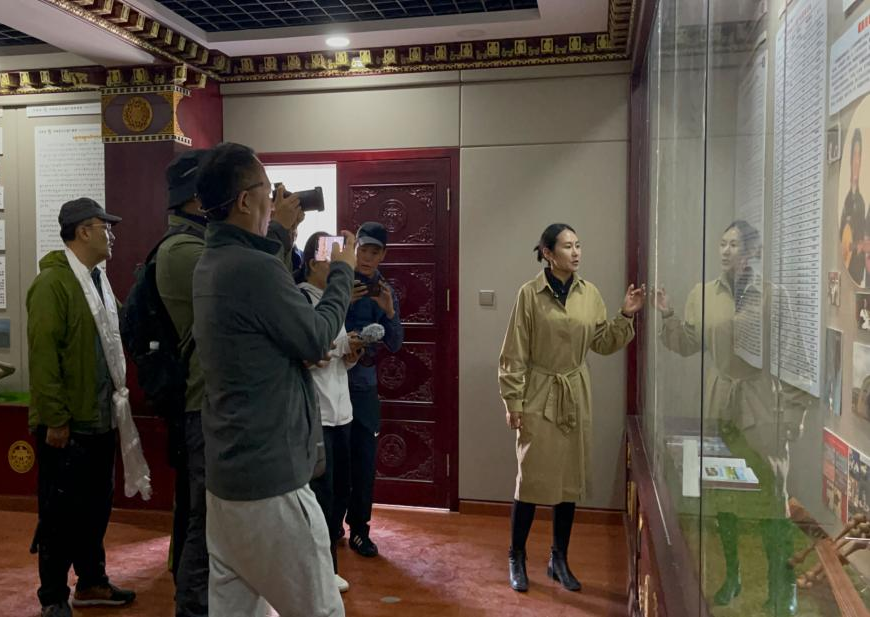 今年是全面贯彻党的二十大精神的开局之年,在全国各地掀起学习贯彻党的二十大精神热潮时刻,为全面贯彻党的二十大精神营造良好舆论氛围,中央广播电视总台民族语言节目中心藏语节目部联合青海广播电视台、四川广播电视台、甘南州广播电视台、迪庆州广播电视台,开展《雪域新征程》为主题的联合采访报道活动,7月16日一行20人赴玛曲县文化馆采访报道拍摄。
