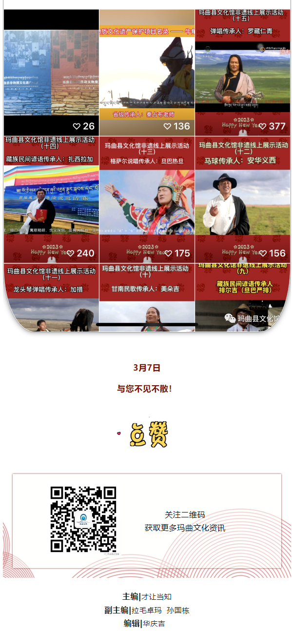 首曲迎新春 戏曲献祥瑞玛曲县文化馆举办“陇原儿女心向党,龙腾鼓舞贺新春”百日千场南木特藏戏村晚活动时间:2024年2月15日(大年初六)地点:玛曲县齐哈玛镇文化广场