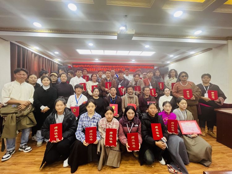 11月6日至17日,由玛曲县文体广电和旅游局主办,玛曲县文化馆承办,玛曲县龙头琴弹唱协会、甘肃阿若格措文化旅游有限公司协办的以“加强新时代玛曲非遗文化建设,充分挖掘地域非遗文化资源”为主题的2023年国家级非物质文化遗产项目名录龙头琴弹唱公益培训班圆满结束,培训就浅谈安多民间传统弹唱的特色、龙头琴演奏传承发展的探索与实践、学习龙头琴弹唱的乐谱和基本知识等弹唱相关内容进行深刻阐述。