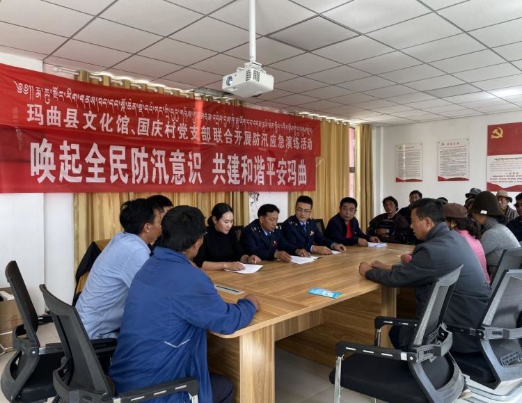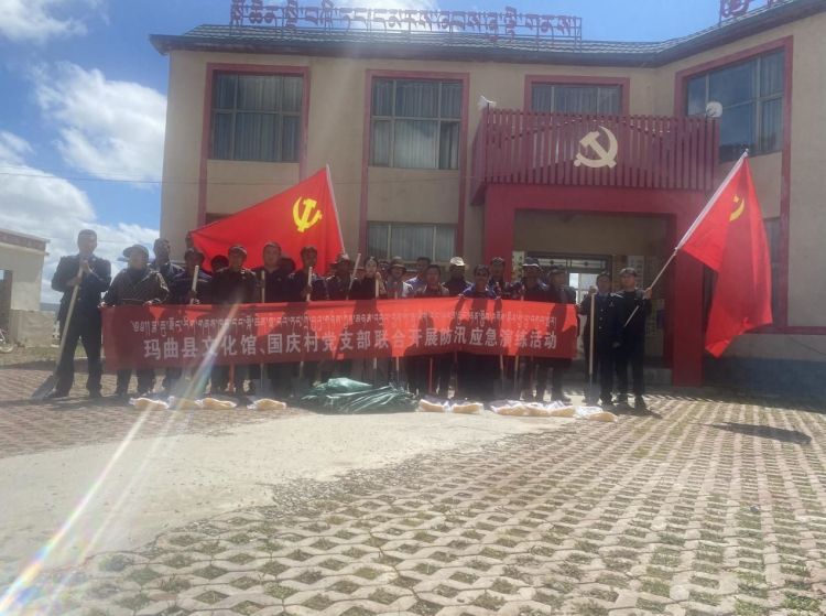 根据《中共中央组织部、省委组织部、州委组织部关于在防汛救灾中充分发挥基层党组织战斗堡垒作用和广大党员发挥先锋模范作用的通知》的通知,为发挥党建引领作用,结合“支部联建”工作,9月7日,玛曲县文化馆党支部联合齐哈玛镇国庆村党支部开展主题党日暨防汛应急演练活动,支部书记拉毛卓玛、国庆村驻村第一书记道吉才让等近二十多人参加演练。