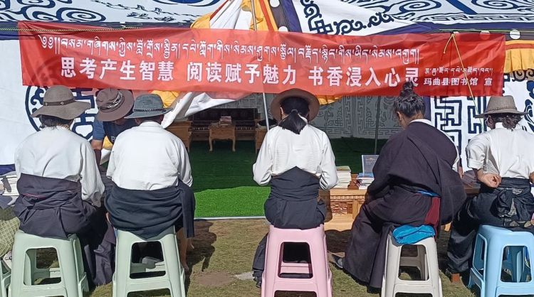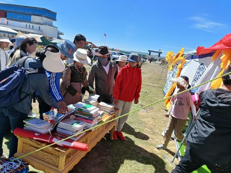 为全面贯彻落实党的二十大精神,铸牢中华民族共同体意识,弘扬优秀传统文化,将优质展览资源惠及广大读者,推动全民阅读,更好地满足人民精神文化需求。在喜迎甘南藏族自治州成立 70 周年,玛曲县举办九色甘南香巴拉●玛曲第十四届格萨尔赛马节之际,8月13日-17日由玛曲县文体广电和旅游局主办、县文化馆承办的图书展览活动在格萨尔赛马场举行。