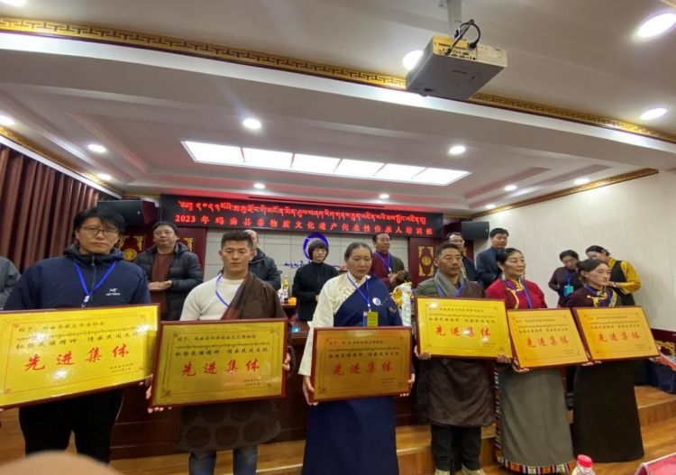 此外,培训还安排部署2023年非遗传承人保护、传承工作;颁发了6项传承人贡献奖、颁发了玛曲县非物质文化遗产项目挖掘、保护等作出贡献奖牌6人,颁发传承民间文化、弘扬民族精神奖牌6个团队、向欧拉镇文化产业园区三家工坊颁发了保护奖牌、向第三批县级传承人颁发了证书、向参会人员赠送了礼品。